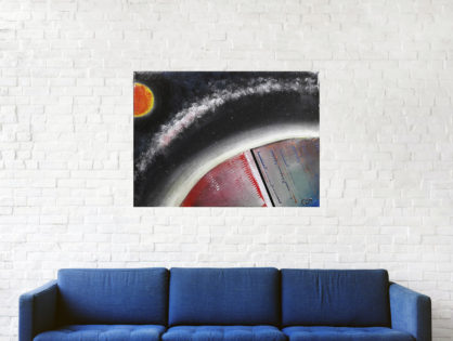 Grimé par delà les faciès inflexibles aux indicibles métamorphoses de son orbite la chair tantôt grise ou purpurin, liée fil comme bobine à cet éternel fil d’Ariane que les yeux ne sauraient discerner. Tellus est un bilboquet céleste.
